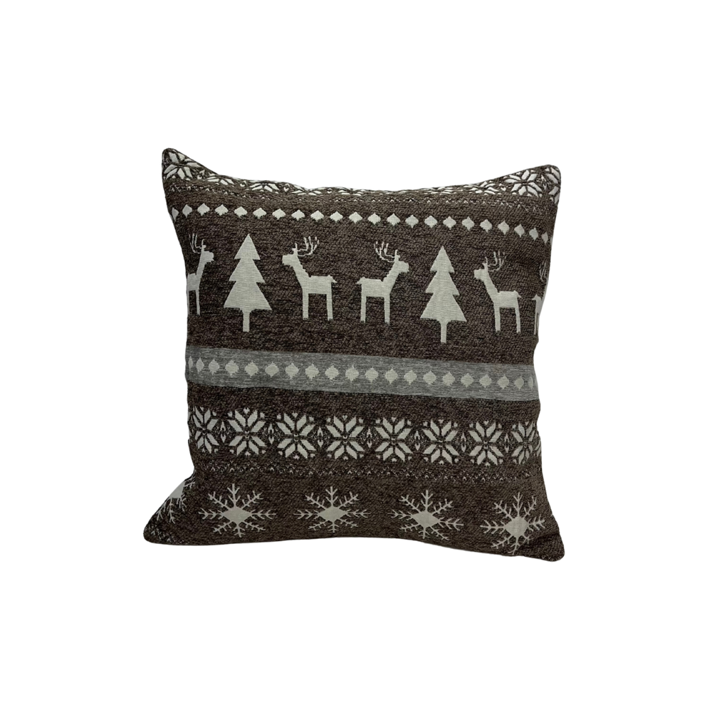 Het bruine Nordic Kerst Kussen brengt een warme en natuurlijke kerstsfeer in je interieur. De aardse tint combineert mooi met houten meubels, plaids en andere winterdecoratie. Het patroon met rendieren en sneeuwvlokken maakt dit kussen perfect voor de decembermaand.